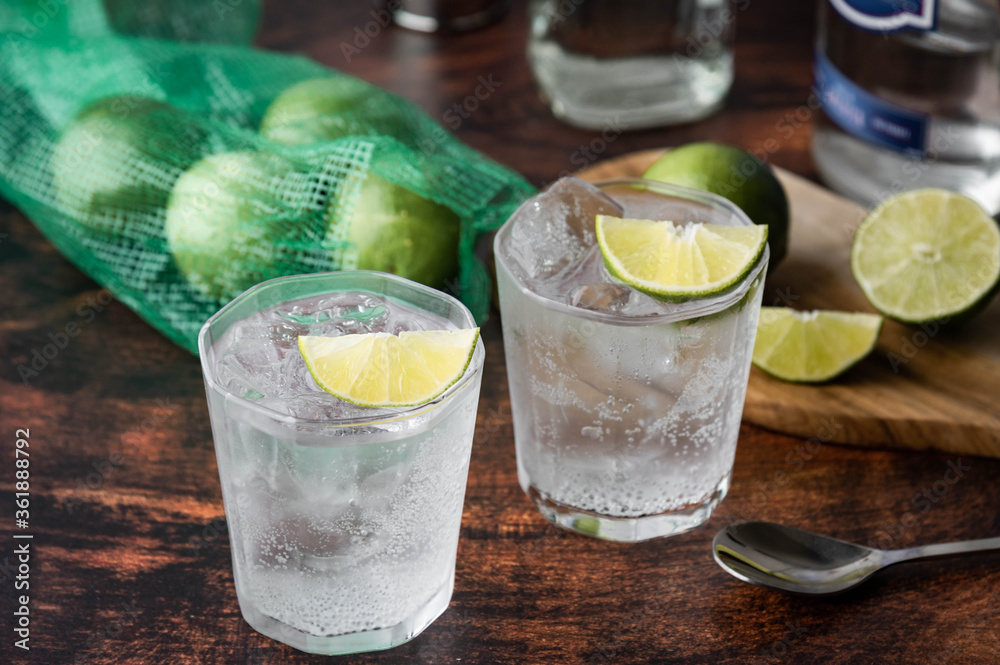 Samolepka ice cold gin tonic image on wooden background