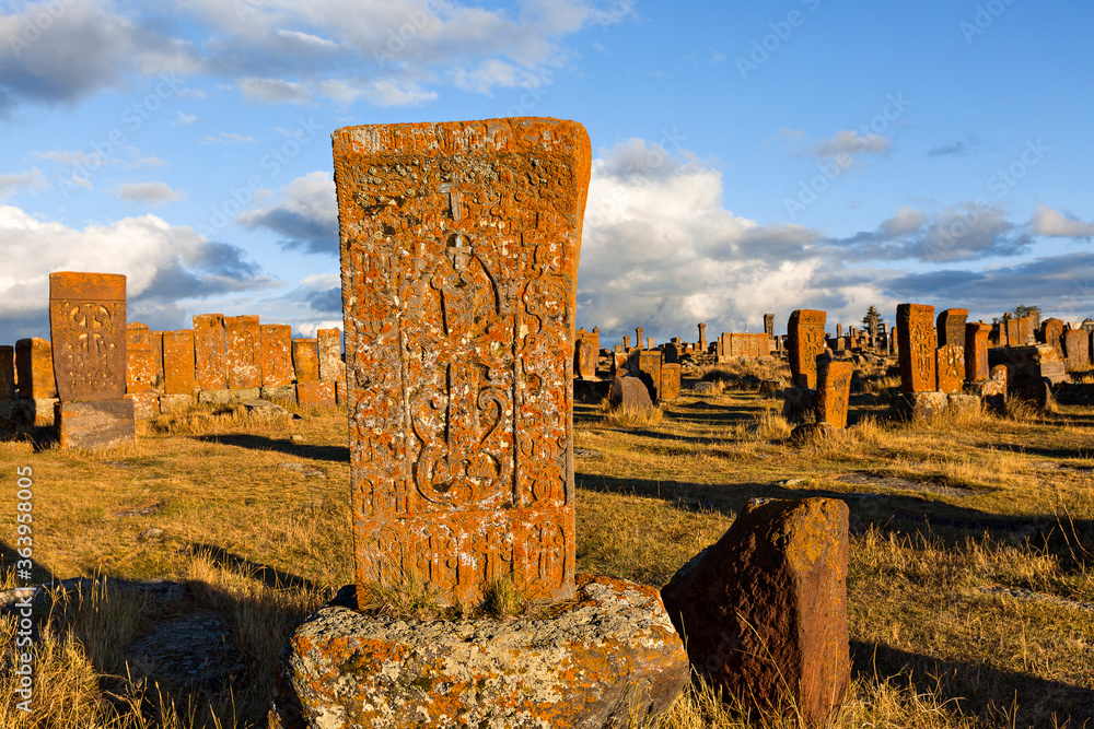 Samolepka Historical tombs and head stones known as Khachkars or Armenian cross stones, in