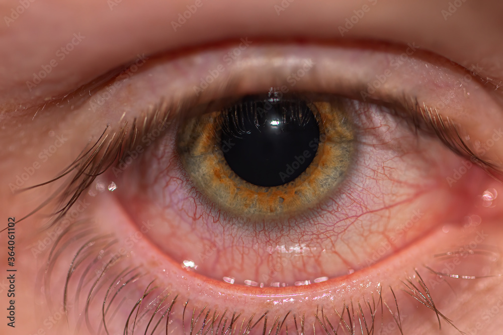 Samolepka A close up of someones eye when its extremely bloodshot from being tired or exhausted