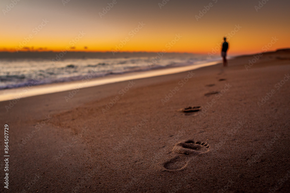 Samolepka A person walking on the beach leaving footprints in the sand