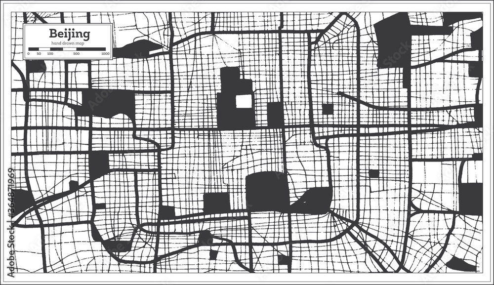 Samolepka Beijing China City Map in Black and White Color in Retro Style