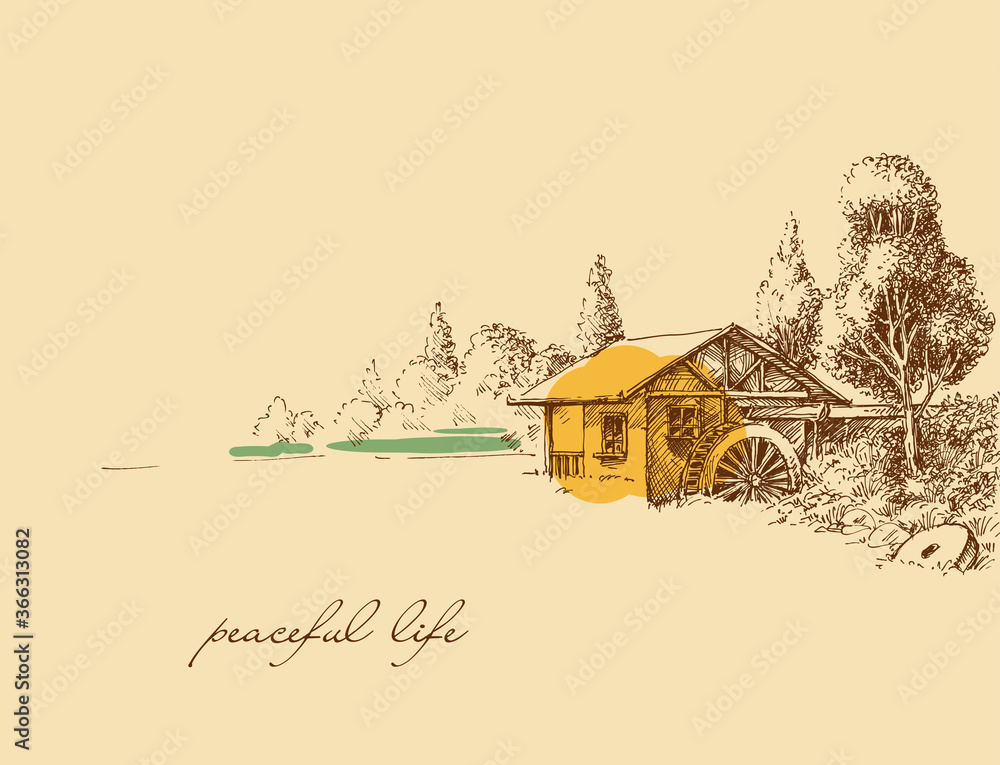 Samolepka Countryside peaceful life hand drawing