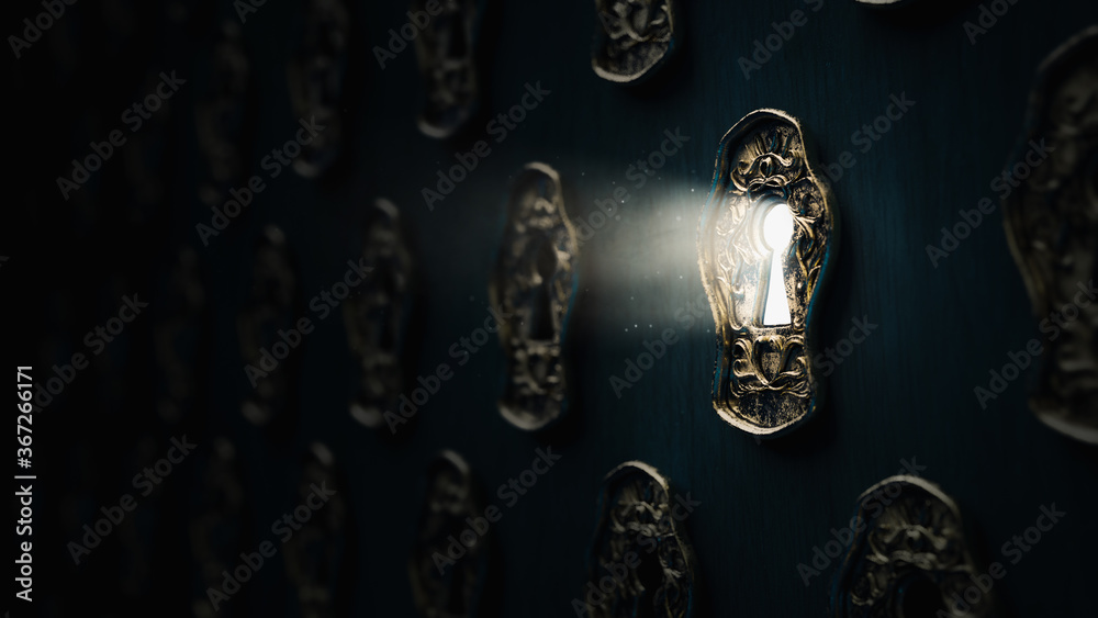 Samolepka ( 3D Rendering, illustration ) light shining through a mysterious keyhole