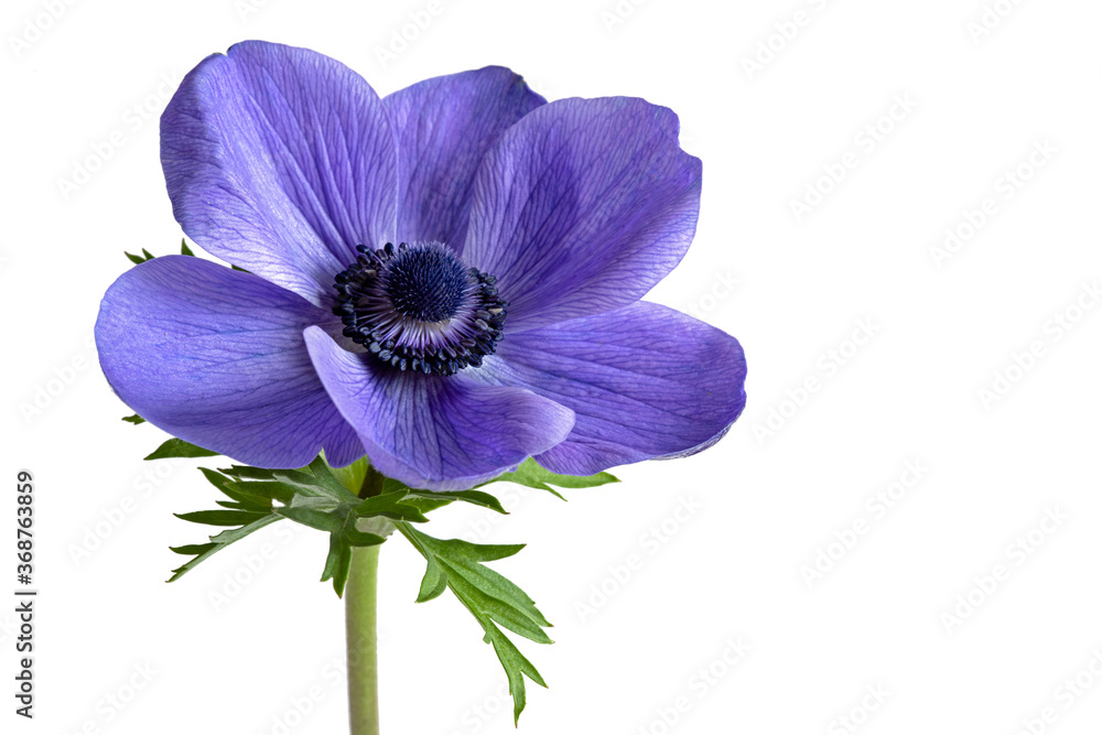 Samolepka Isolated beautiful blue anemone flower on white background