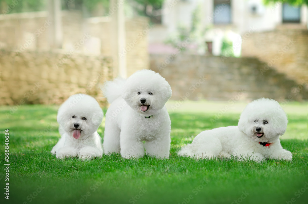 Samolepka bichon frize cute dog white wool fun walk in the park