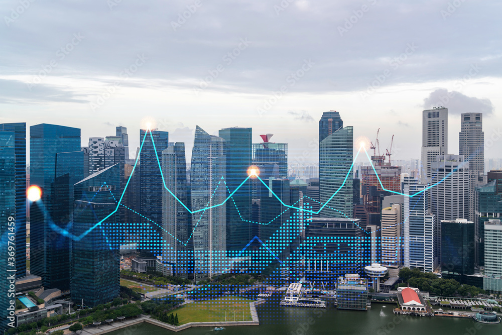 Samolepka Financial stock chart hologram over panorama city view of Singapore, business center in Asia