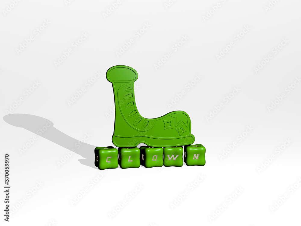 Samolepka 3D illustration of clown graphics and text made by metallic dice letters for the related meanings of the concept and presentations