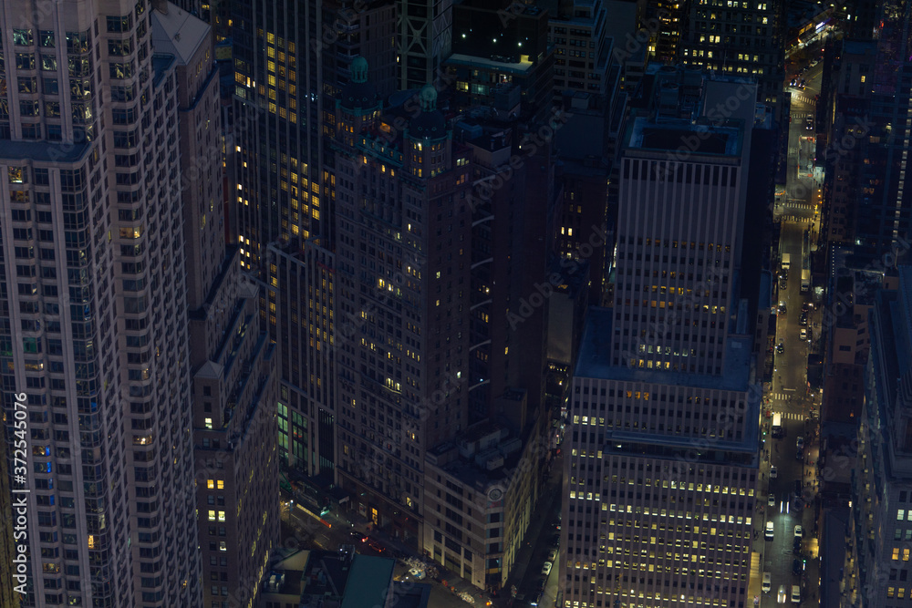 Samolepka Looking down from a skyscraper to Manhattan buildings and streets in financial d