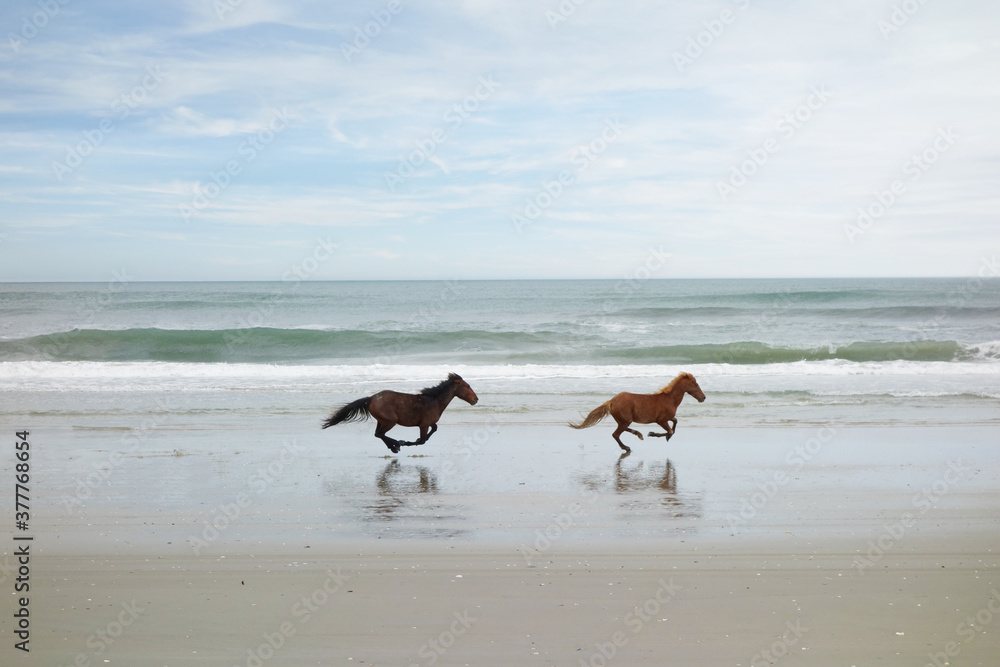 Samolepka Two wild horses on the beach in Corolla on North Carolina Outer Banks