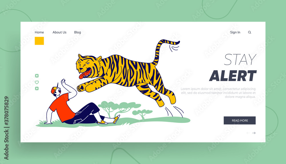 Samolepka Tourist Character Attacked with Tiger Landing Page Template