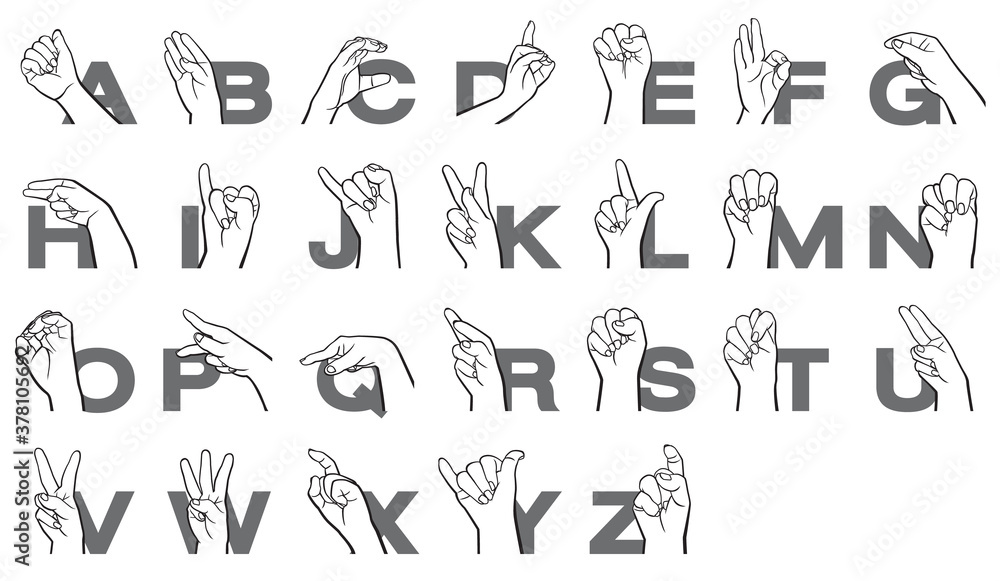 Samolepka Hand sign language alphabet Letter Collection Vector Illustration