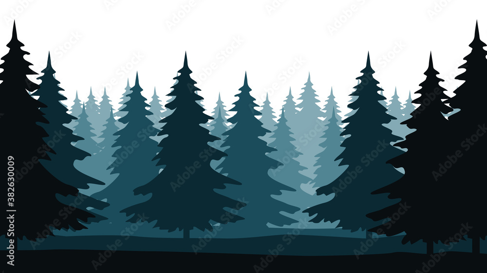 Samolepka Forest landscape with silhouettes of coniferous trees