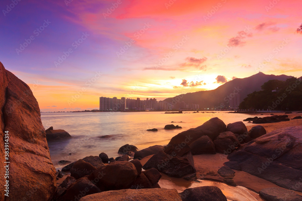 Samolepka Sunset with sea stones in Hong Kong