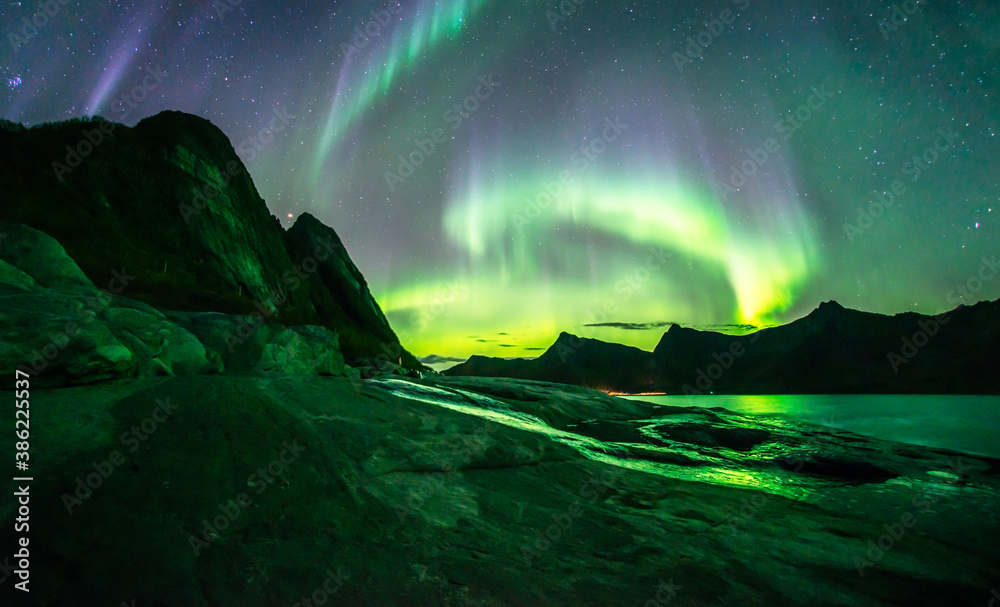 Samolepka Amazing auroras storm above Rocks of Tungeneset Viewpoint, Senja, Norway