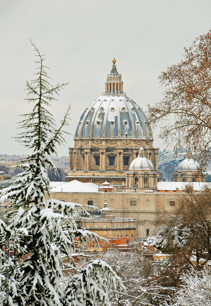 saint peter cathedral white under the snow in city rome