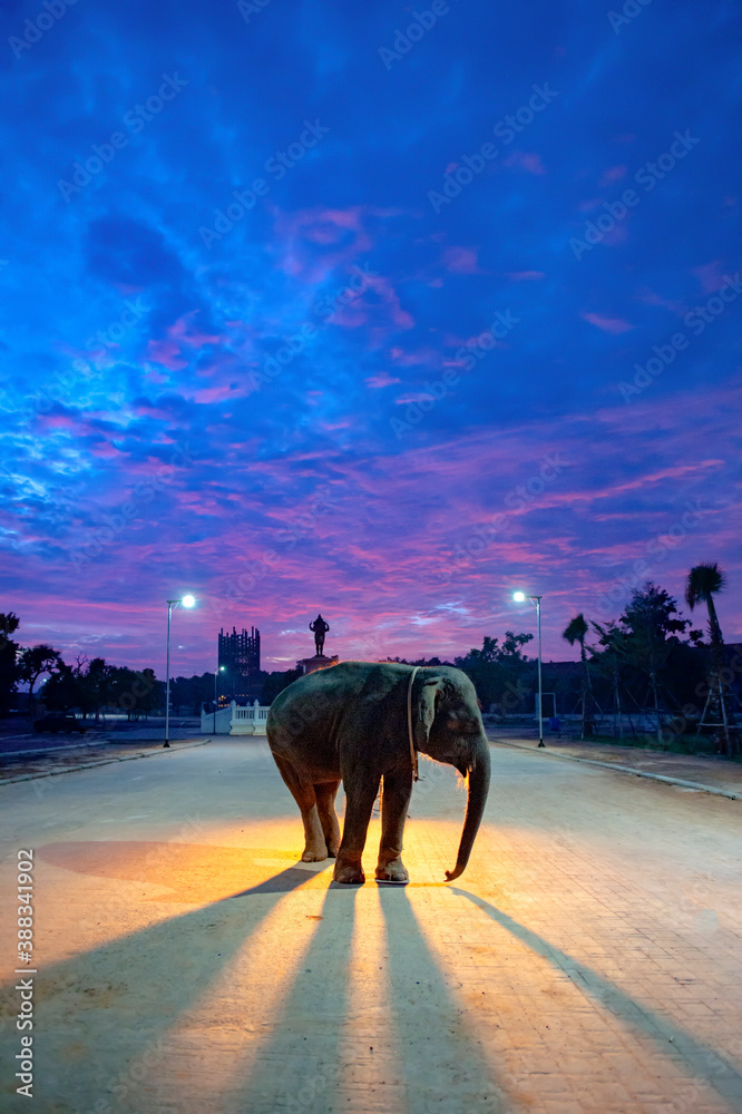 Samolepka Thai elephants are standing at elephant World in Thailand's Surin in an elephant village,Thailand