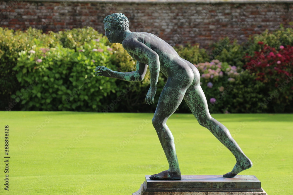 Samolepka statue of a person getting ready to run in a garden