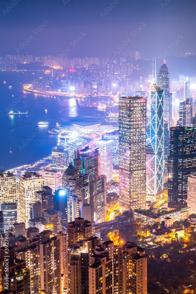 Samolepka Hong Kong Architectural Landscape skyline night view
