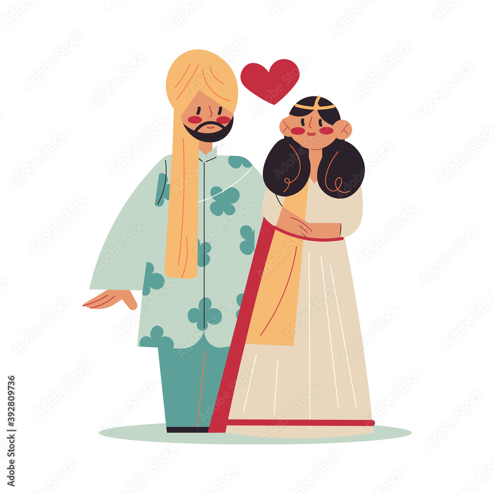 Samolepka Happy young Indian couple woman and man ijn traditional costumes during wedding