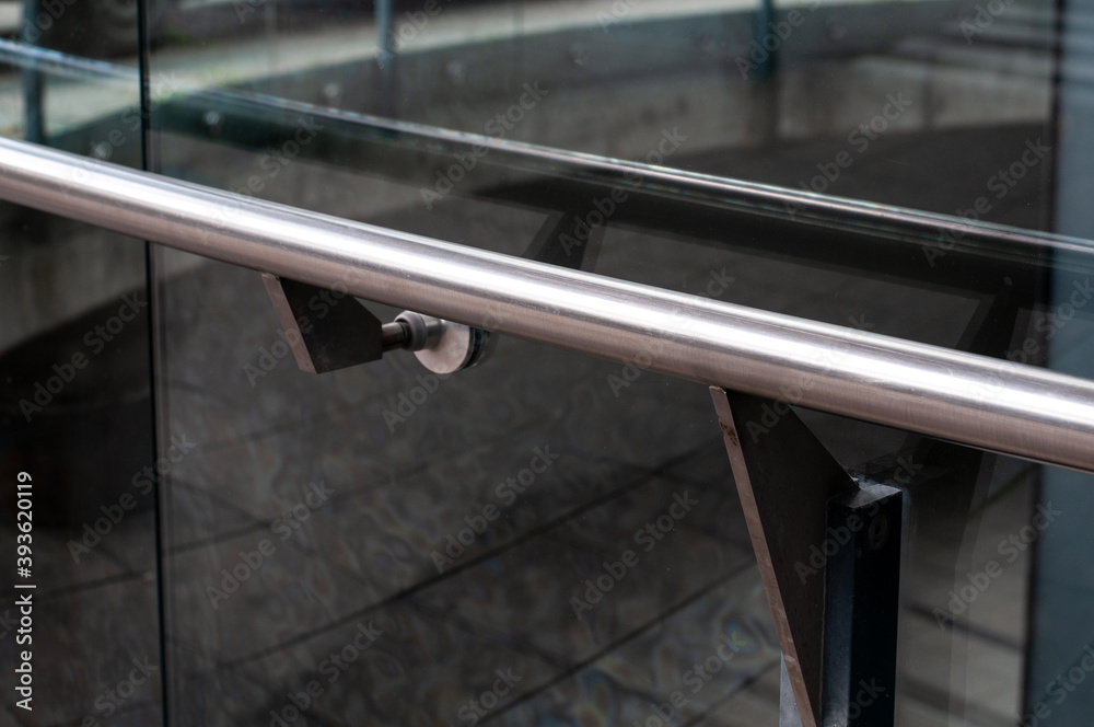 Samolepka a railing of stainless steel at a glass wall