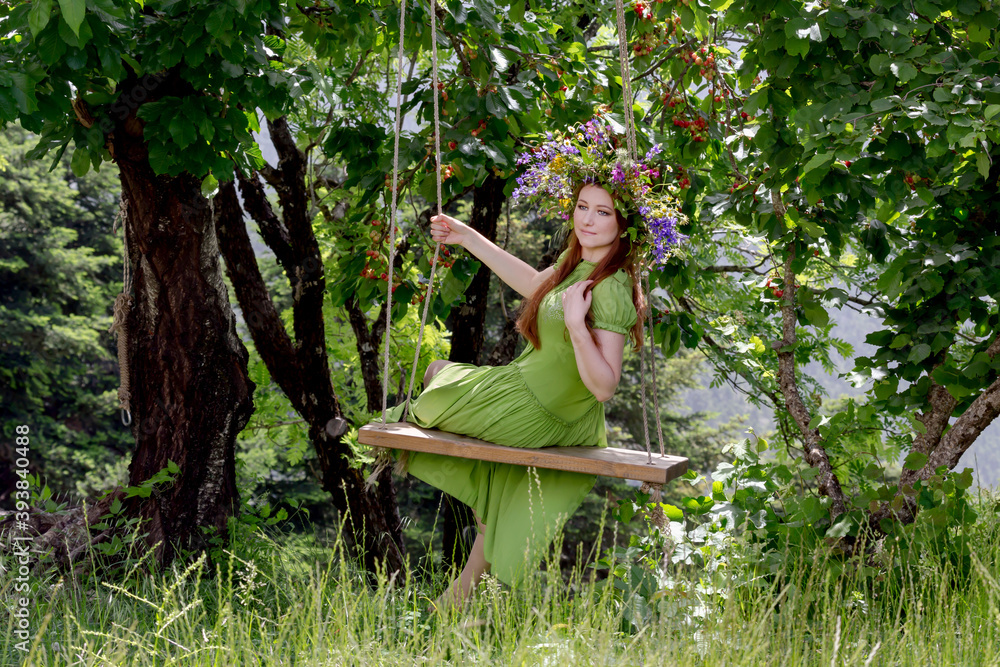 Samolepka Young girl with a wreath of wild flowers