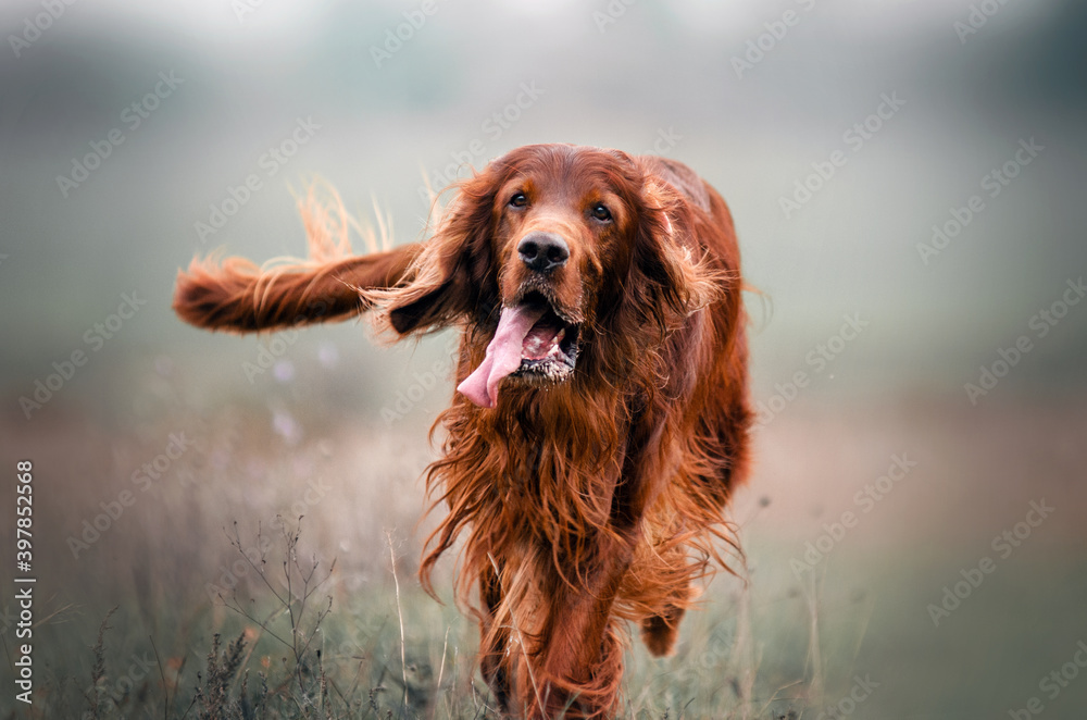Samolepka autumn walk with the dog portrait of irish setter in gentle colors