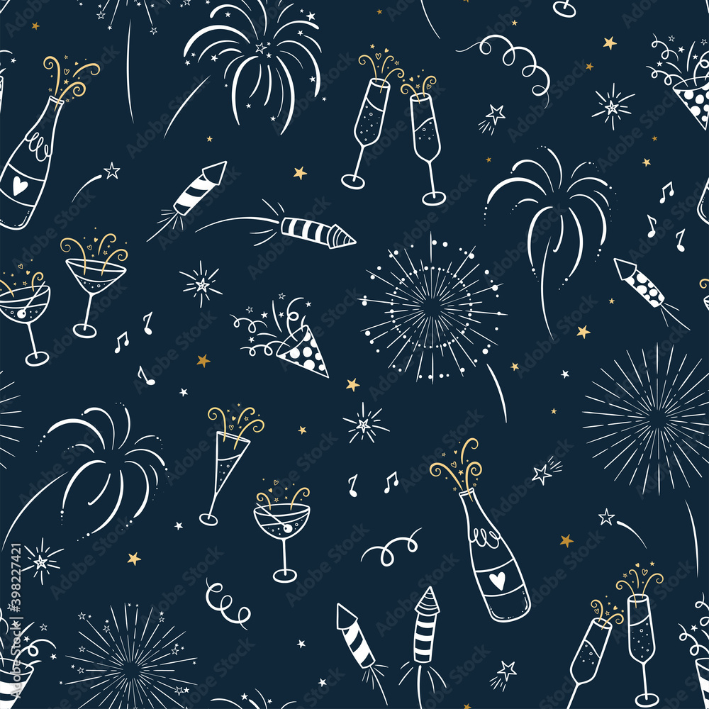Samolepka Lovely hand drawn party seamless pattern, great for New Year's Eve, banner, text