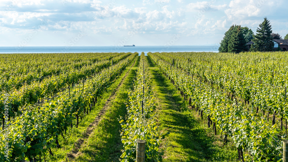 Samolepka Vineyard in Niagara-on- the- lake, Ontario, Canada with Lake Ontario in background