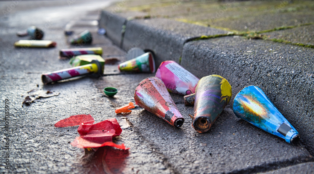 Samolepka Nach der Silvester Knallerei liegen am nächsten Tag die alten Bäller und abegbra