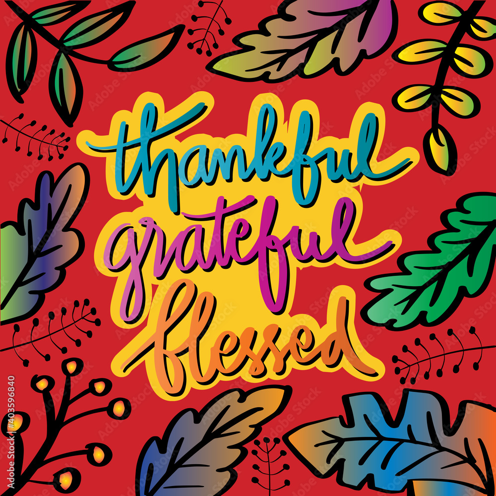Samolepka Thankful grateful and blessed lettering