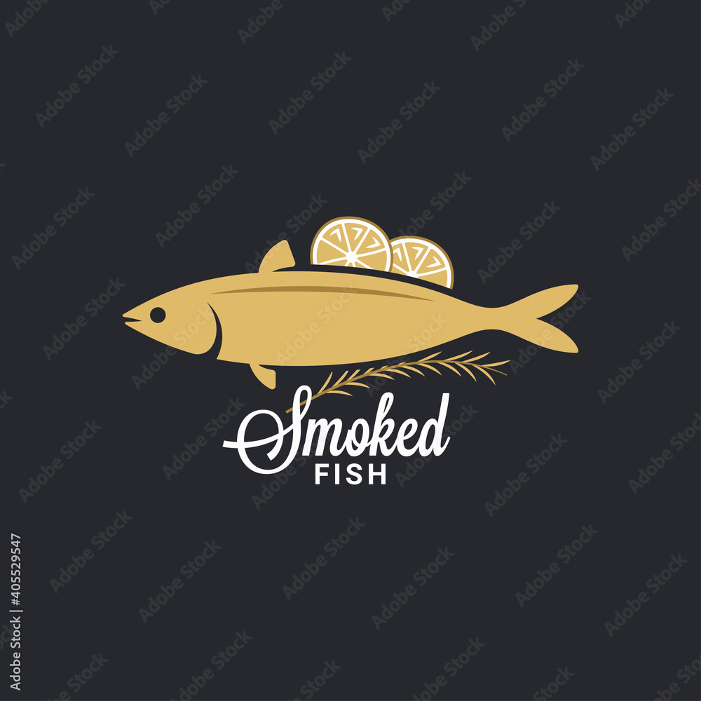Samolepka Smoked fish logo. Fish with lemon and rosemary