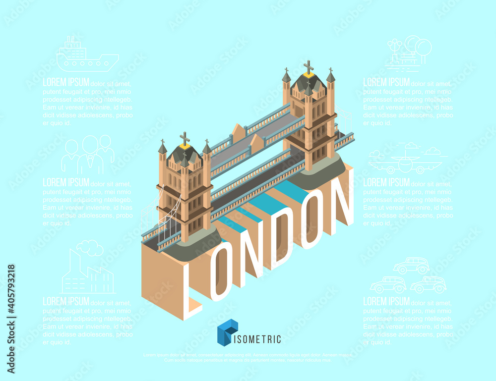 Samolepka isometric famous place in london tower bridge, vector illustration