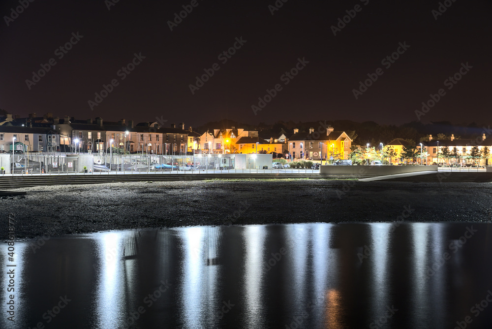 Samolepka Beautiful night view of Greystones Harbour Marina with light reflection in the water, Greystones, Co