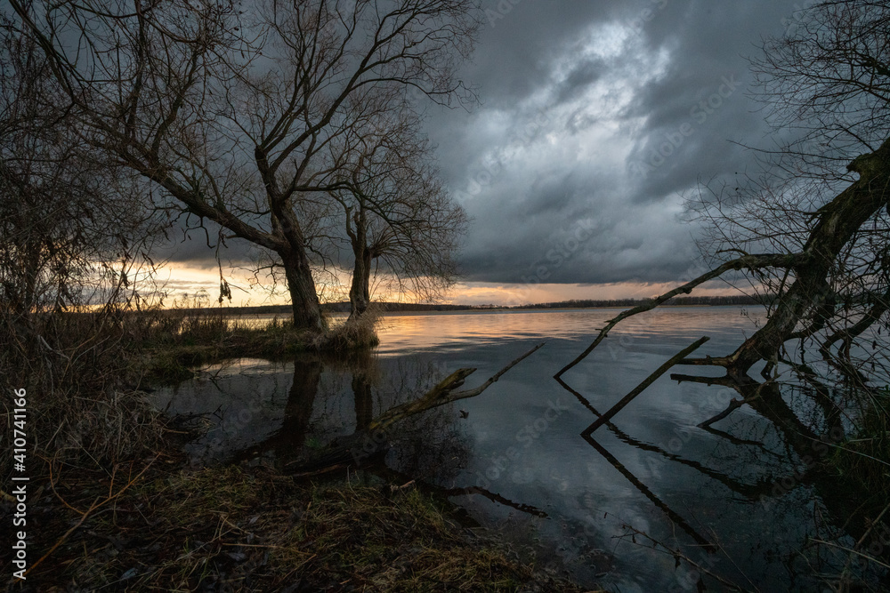 Samolepka Atmosphärisches Bild im Stil Caspar David Friedrichs einer Wiesenlandschaft bei