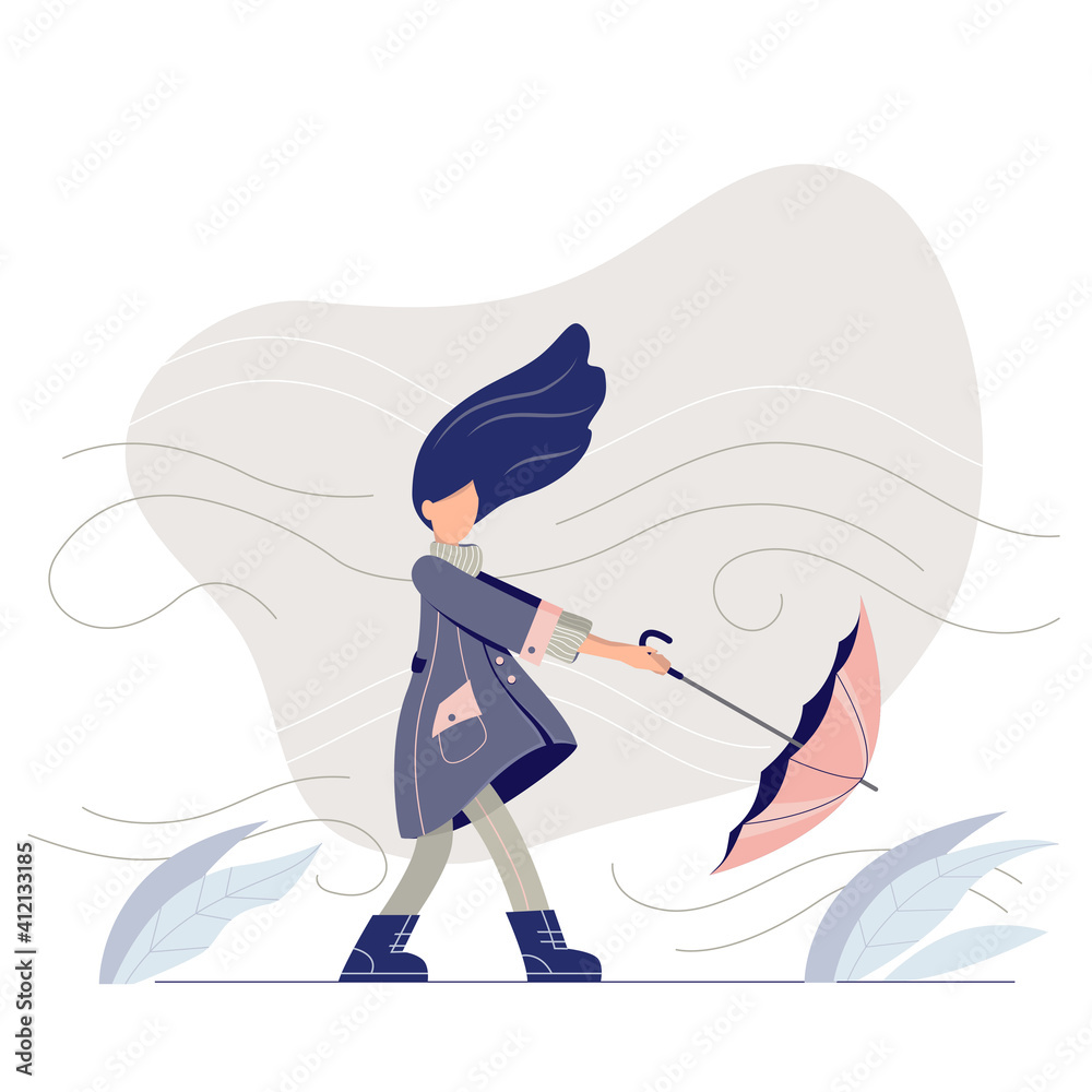 Samolepka A stylish girl walking in a windy day
