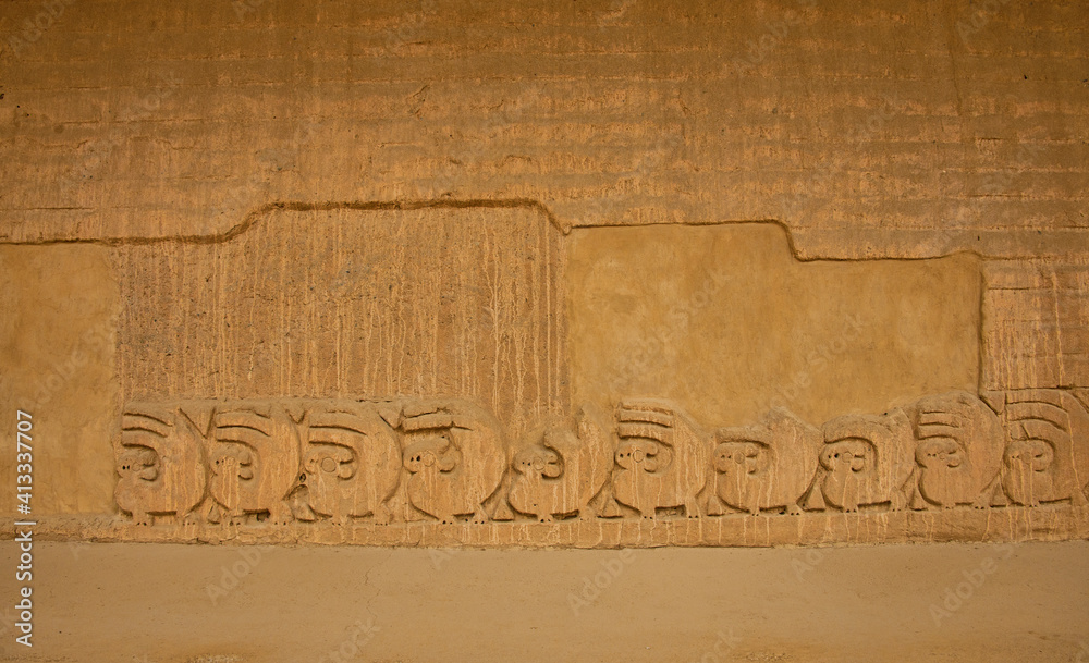 Samolepka Beautiful carvings at the ancient ruins of Chan Chan, Trujillo, Peru