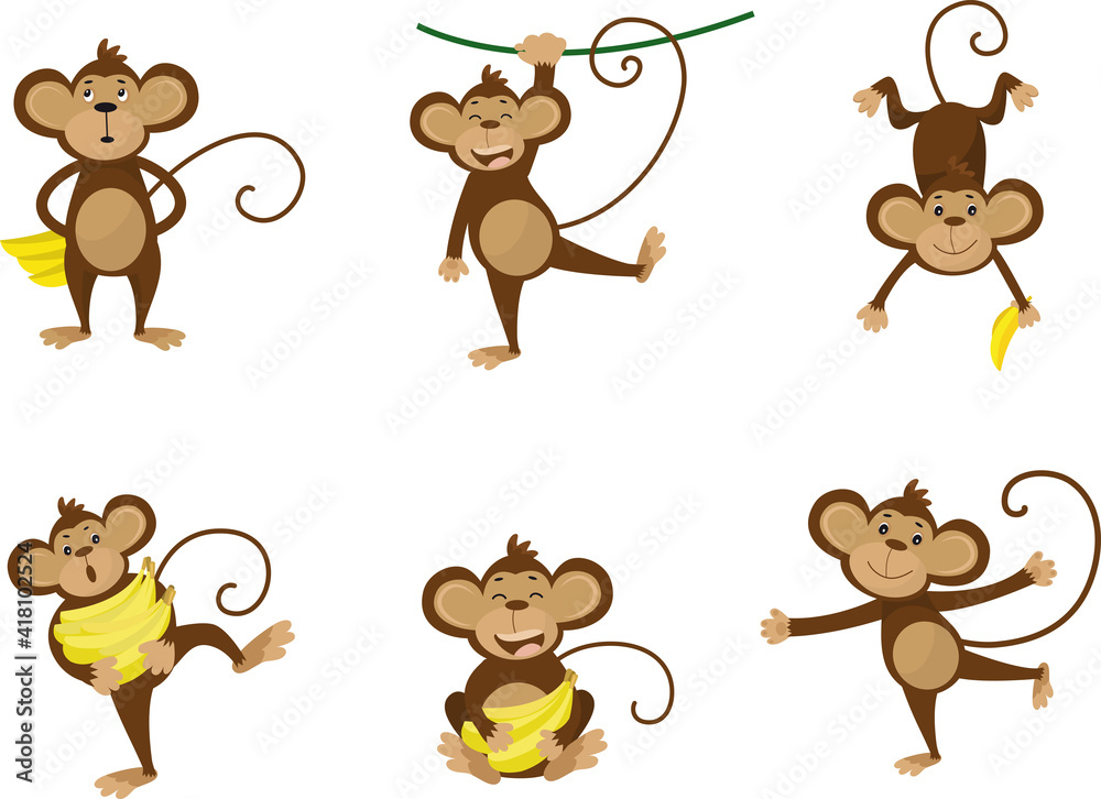 Samolepka Collection of monkey in different poses with banana