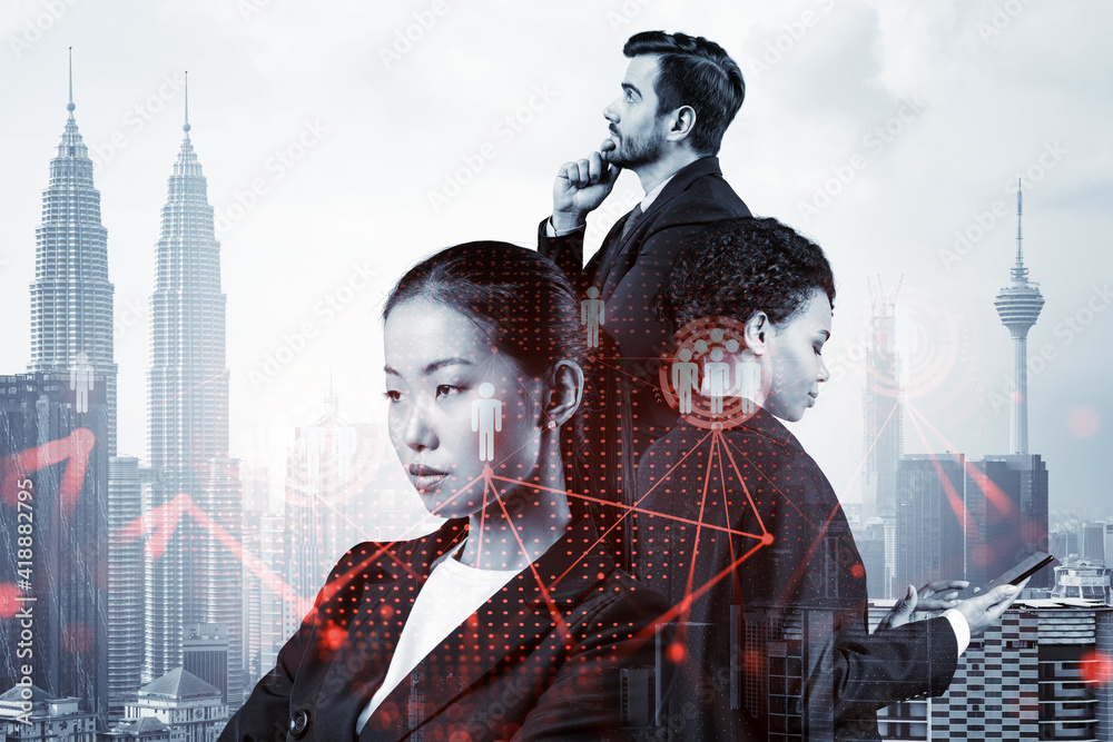 Samolepka Group of SMM specialists working on social media marketing strategy to achieve business goals