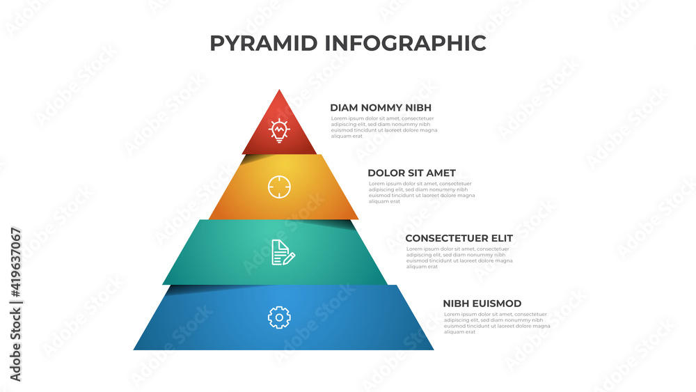 Samolepka Colorful pyramid infographic template vector with 4 steps, list, levels diagram
