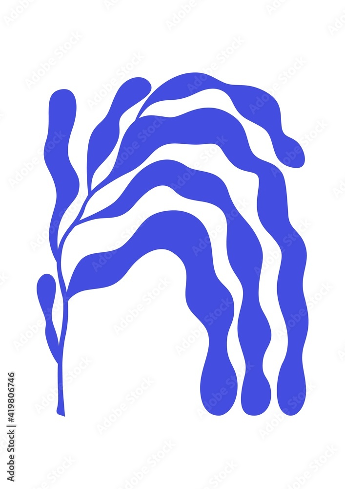 Samolepka Contemporary Matisse-inspired botanical poster with branch of algae with long blue leaves