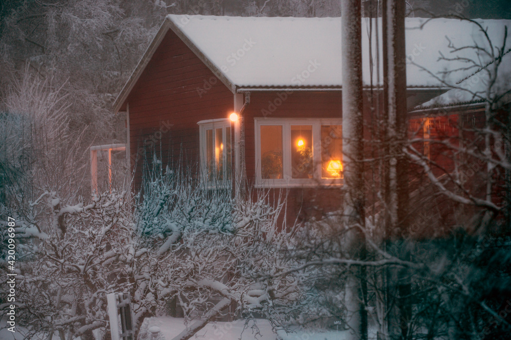 Samolepka house in the snow, nacka, sverige, stockholm,sweden