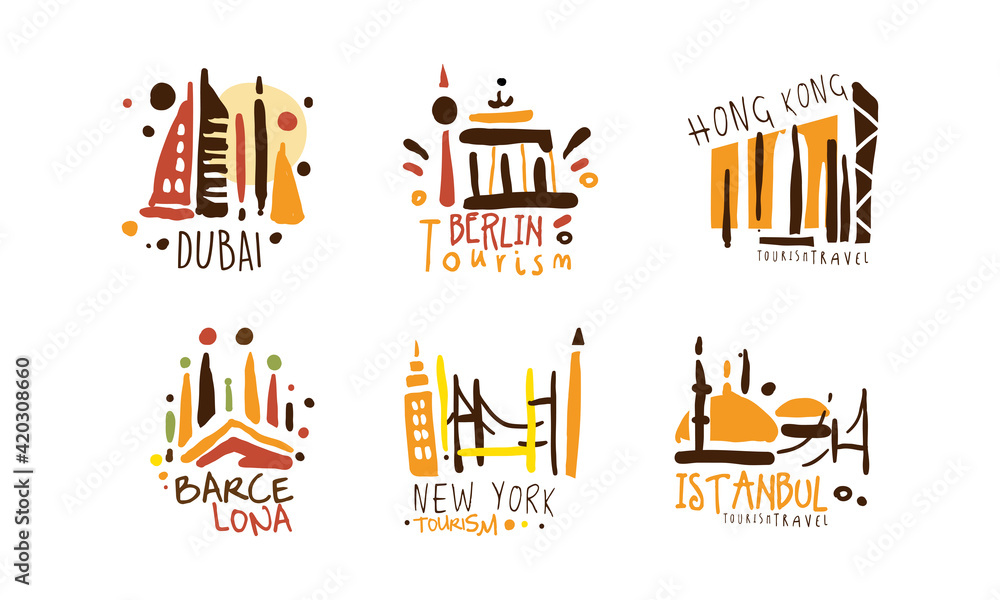 Samolepka Touristic Logo Templates Design, Travel over the World, Dubai, Berlin, Hong Kong