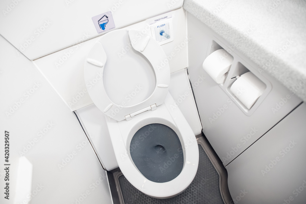 Samolepka Airplane passenger lavatory toilet seat and water wash basin