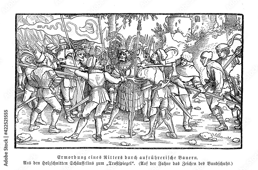 Samolepka Assassination of a knight by hand of rebellious peasants of the shoemaker league
