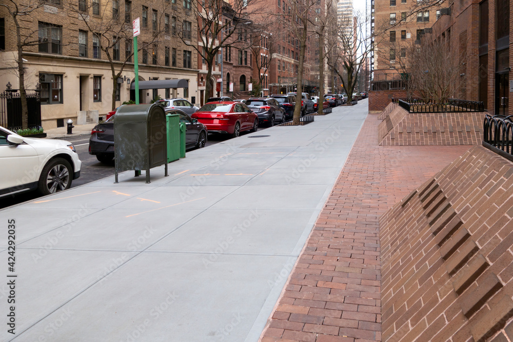 Samolepka Manhattan New York City concert sidewalk walkway path with parked streetcars