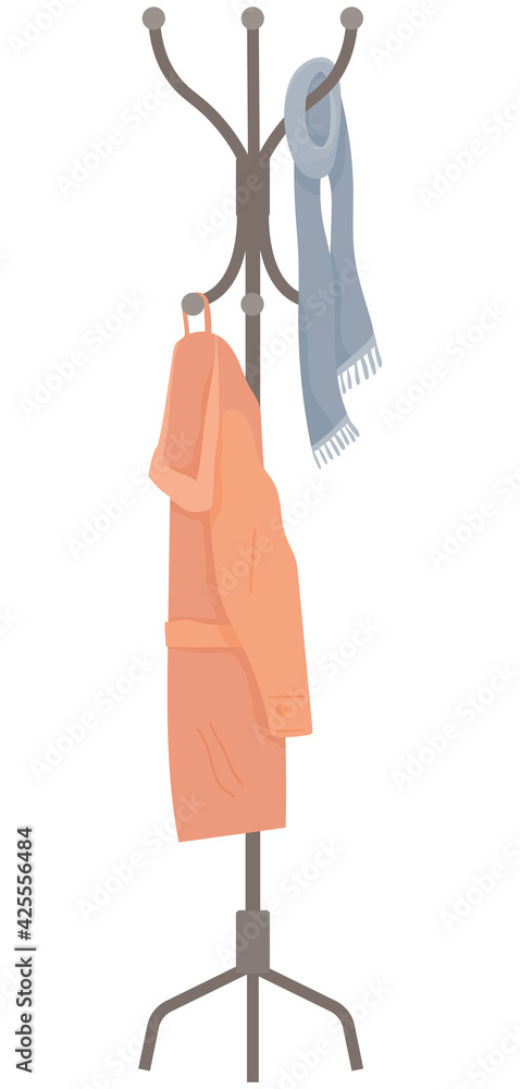 Samolepka Wooden floor coat rack - hanger for cothes with jacket and scarf isolated on whi