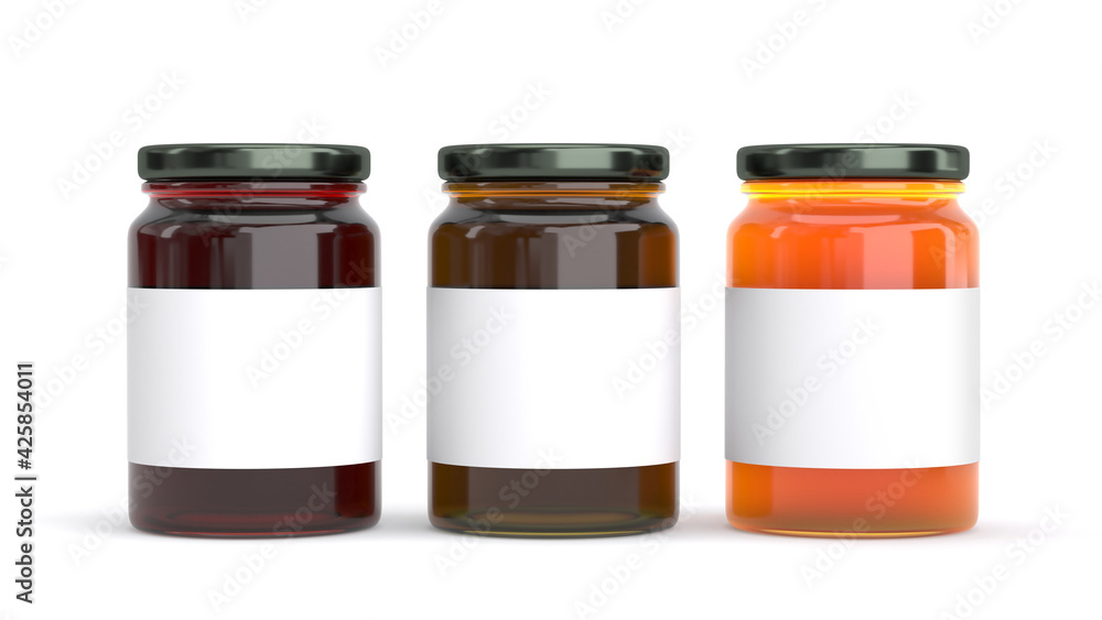 Samolepka orange marmalade or maple syrup or jam in glass jar isolated mockup template - 3