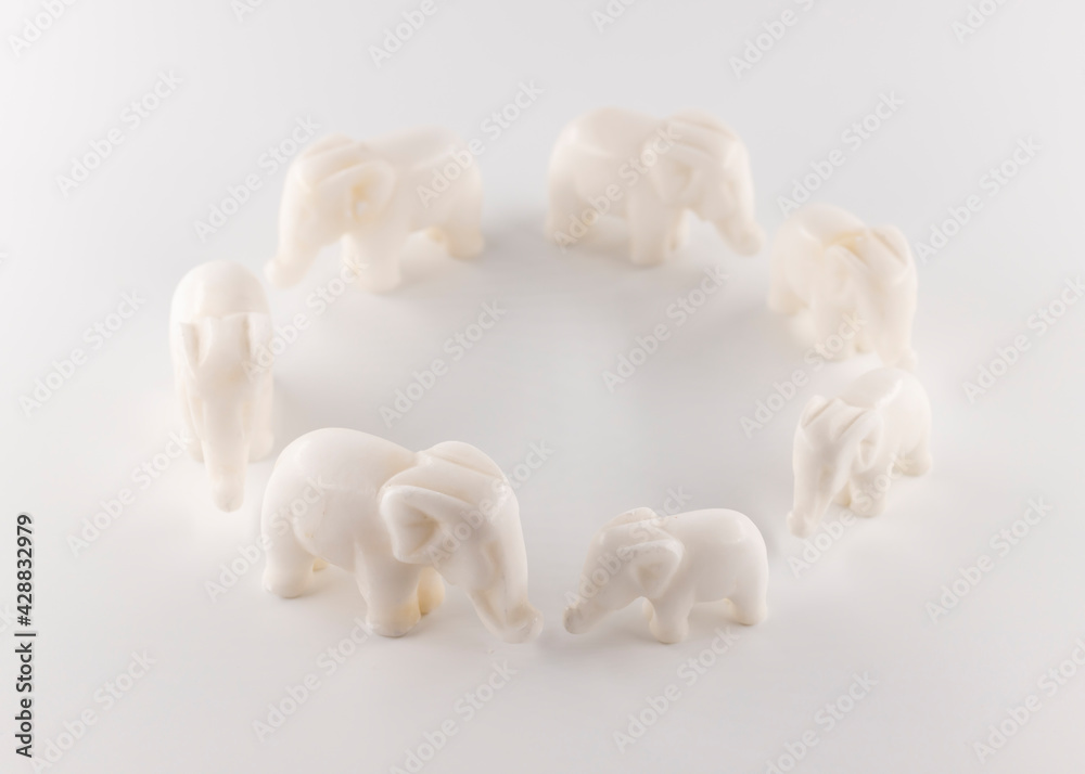 Samolepka Seven vintage marble figurines of elephants as a symbol of prosperity