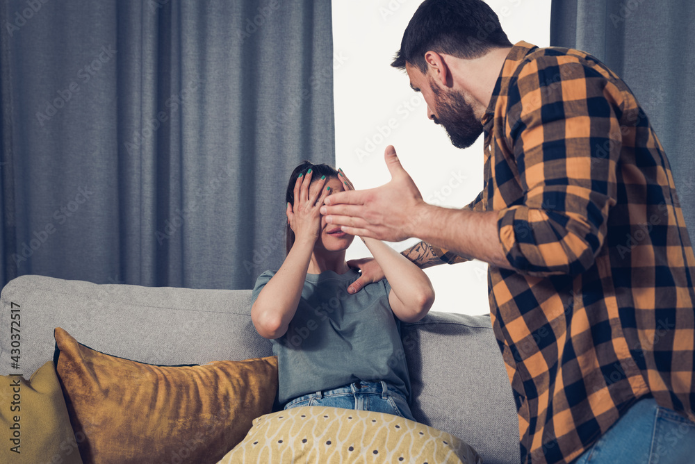 Samolepka Newly married young couple where a man attacks and mentally abuses her young wif