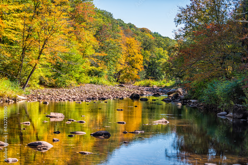 Samolepka Morning sunrise at Tea creek campground with shallow river water landscape in co
